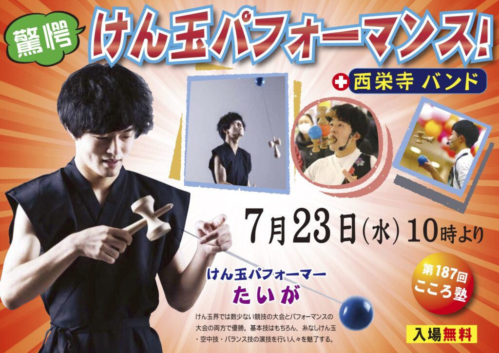 7月のこころ塾は?!驚愕!けん玉パフォーマンス!さらに、西栄寺バンドの演奏をお届けします! 開催場所 大本山大阪本坊 開催日時 2025年7月23日(水)10時スタート -