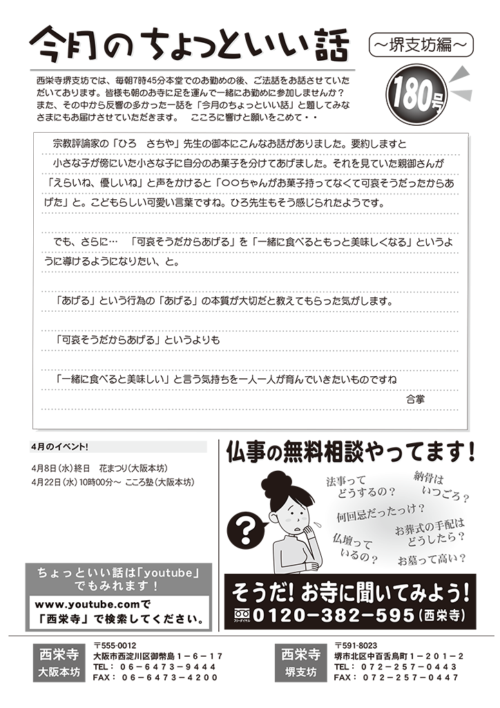 堺支坊のYouTube〝堺西栄寺チャンネル〟